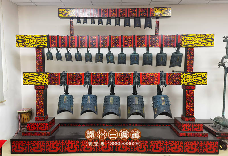 簡介:26件木結(jié)構(gòu)演奏級編鐘,是一套專業(yè)演奏類古樂器,整套編鐘分3層懸掛排列,由長短不同的三根彩繪橫梁和4個青銅佩劍武士立柱及2根圓立柱組成