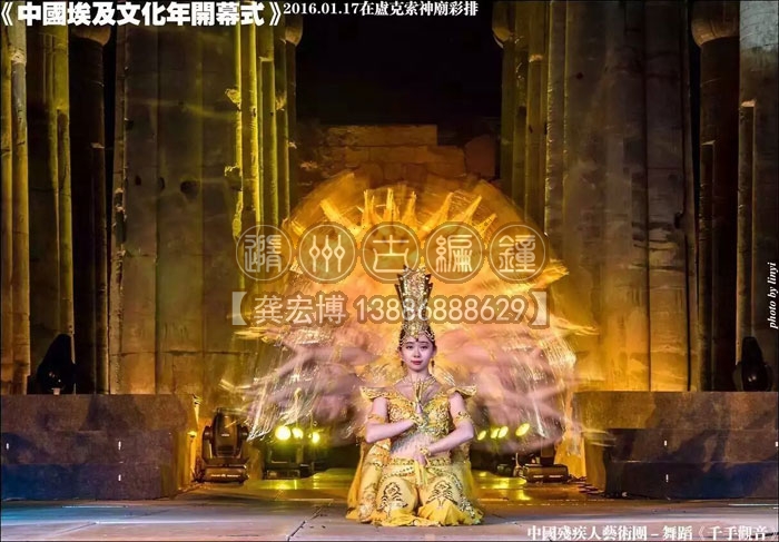 埃及當(dāng)?shù)貢r(shí)間2016年1月21日,國(guó)家主席習(xí)近平和埃及總統(tǒng)塞西在古老的盧克索神廟廣場(chǎng)共同出席中埃建交60周年慶?;顒?dòng)暨2016中埃文化年開(kāi)幕式。湖北省歌舞劇院進(jìn)行編鐘表演禮樂(lè)《金石合鳴》。
