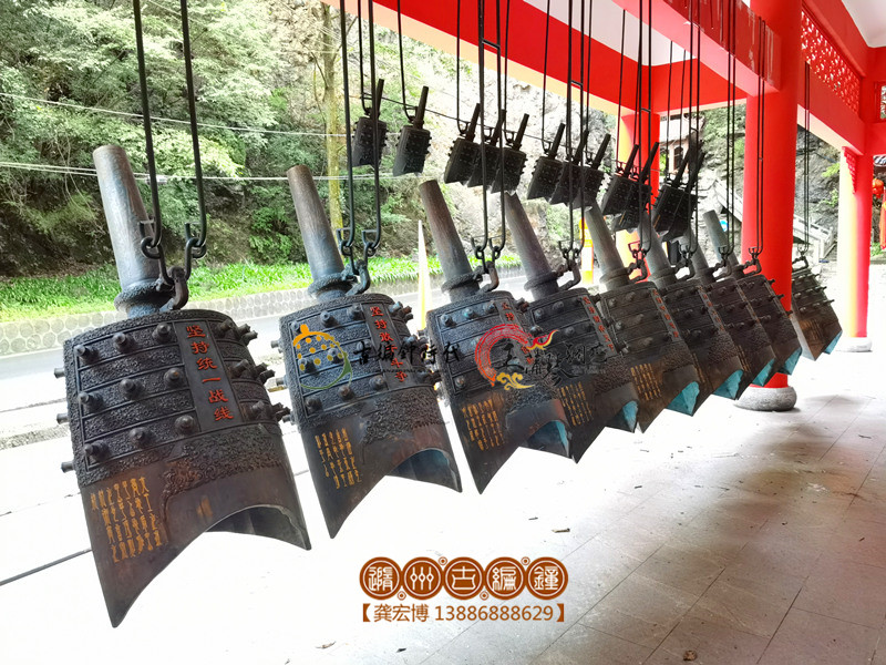 2023年7月,隨州古編鐘公司制作的10件大型曾侯乙甬鐘及一組旋律編鐘,在堯治河旅游景區(qū)完成安裝工作。當(dāng)悠悠鐘聲回蕩山谷時(shí),它那古樸渾厚的樂音,激蕩起人民對(duì)黨的赤誠(chéng)忠心,又仿佛在訴說(shuō)革命先輩對(duì)未來(lái)的期望。這次將編鐘作為文化的載體,展現(xiàn)了中華歷史的厚重和新時(shí)代征程的拓印,這份紀(jì)念豐富了景區(qū)的文化內(nèi)涵,映襯了自然景色,讓游客在旅途中感受山水古樂的酣暢淋漓。